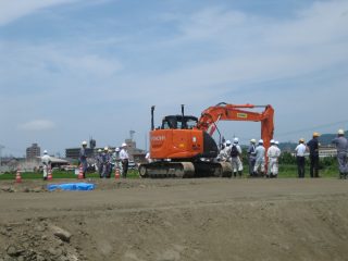 大橋川剣先川仮設護岸整備第2工事・ICT施工現場見学会に参加