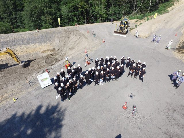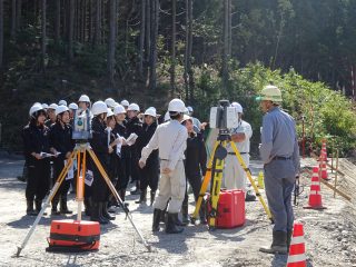 9月26日秋晴れの中、山陰道朝山地区で松江高専土木課4年生46名が