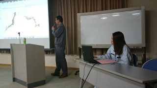 やや緊張している様子でしたが、上手く話は出来ました。しかし、UAV計測ビデオがなかなか流れなくて冷や汗ものでした。