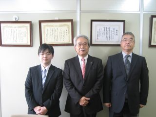 左側 石倉 光(ひかりと書いてあきら)さん 岡山理科大学H28卒 技術管理部配属です。