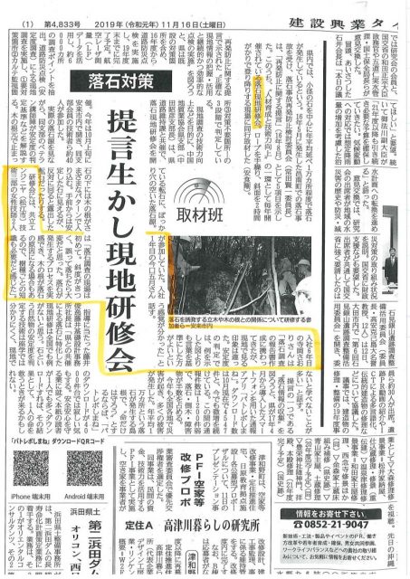 落石現地研修会参加の記事掲載