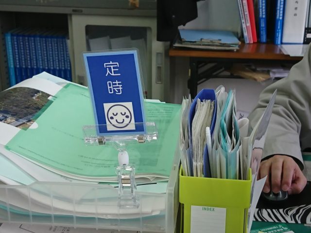 「カエル札」を掲示して効率良く仕事をして、早く家に帰りましょう。