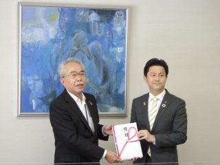 贈呈の席には、上定市長をはじめ、山根政策部長、佐目政策部次長の