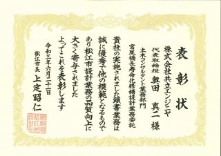令和3年8月20日、松江市優良業務表彰を頂きました。