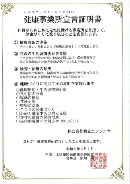 また、2022年度も同様に「健康事業所宣言」をして、社員が元気に働ける