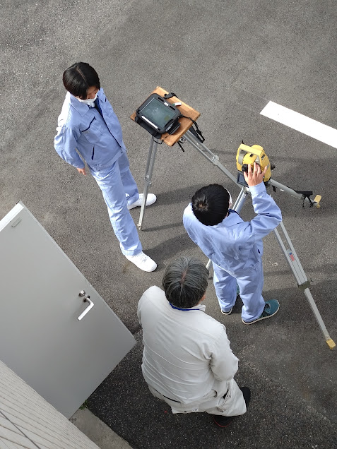 初日は、測量全般の座学と午後は会社駐車場で電子平板の演習を行いました。