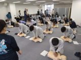 今回は、松江消防署の職員さんに来て頂いて「胸骨圧迫」の実習を行いました。