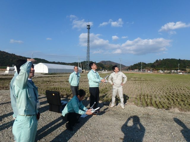 UAV(ドロ-ン)の操作講習会を行いました。当社の講師は、和多田課長と瀬尾課長、写真撮影・大浜理事です。