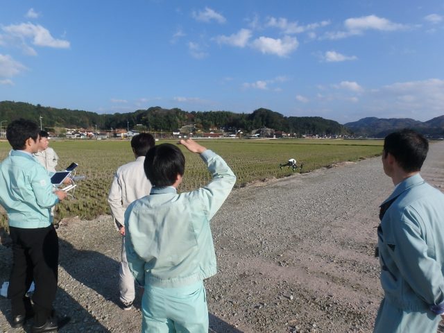 UAV(ドロ-ン)の操作講習会を行いました。当社の講師は、和多田課長と瀬尾課長、写真撮影・大浜理事です。