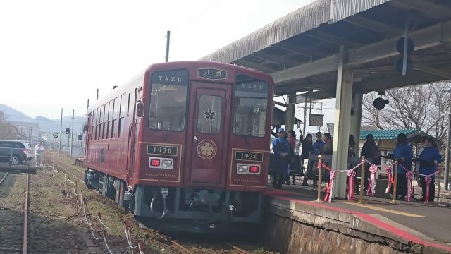3/2(土) 若桜鉄道の新しい観光列車「八頭号」が運行を初めました。
