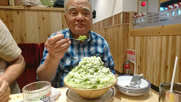 顧問はかき氷を前に
