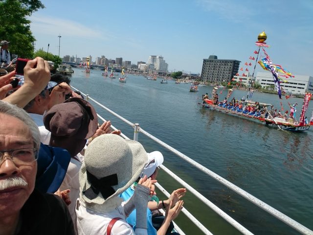 次の10年後は松江にいないので、これが最初で最後だと思い、真夏日の中、大橋川沿いで11時前から待機。