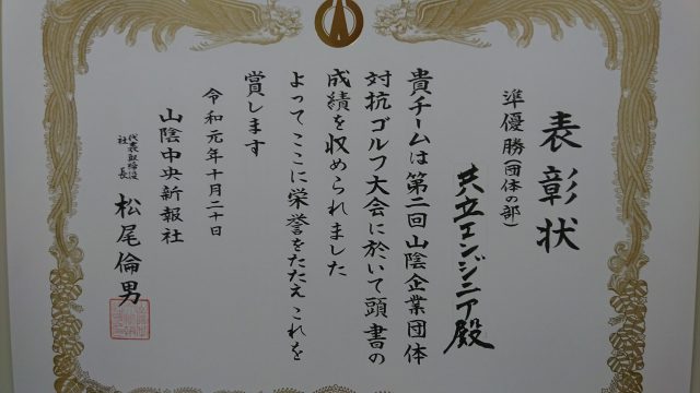 第2回山陰企業団体対抗ゴルフ大会・共立エンジニヤ準優勝