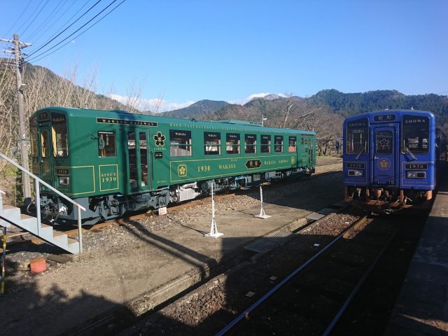 3/6に若桜駅に行きますと緑色の「若桜号」に1番目の観光列で車青色の「昭和号」が