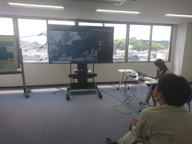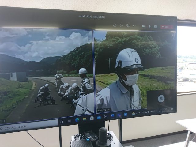 昨日7/27、洗川のUAVレーザ-計測の現場にてスマートグラスでの遠隔情報を