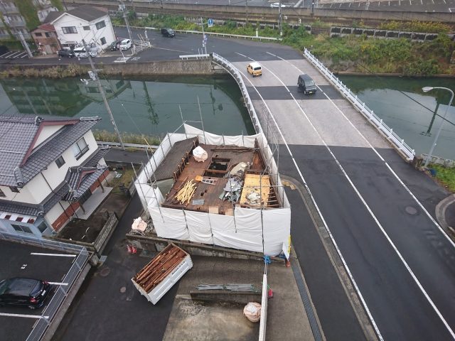 10/19 今日は午後から雨で、隣地解体工事の進捗は進んでいません。
