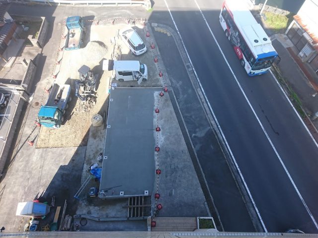 手前の階段の手摺部分の型枠が取れて、階段部の型枠も出来ました。