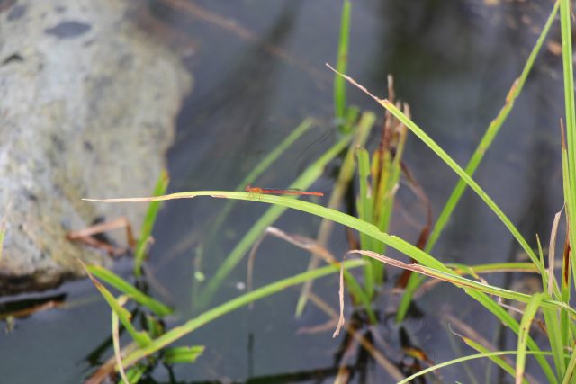 何とこの公園の池で矢野さんと若槻さんが絶滅危惧種のベニイトトンボを発見。