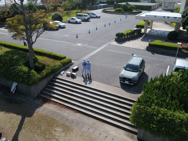 最後の演習は、高校の敷地をお借りしてのドロ-ン操作です。