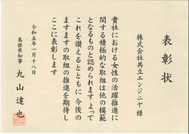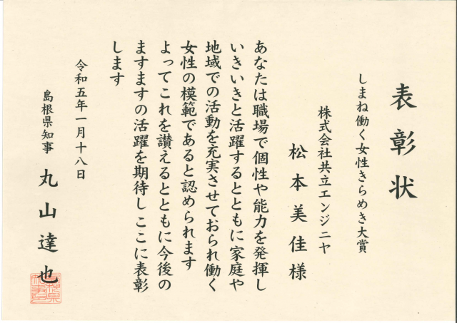 おまけに、しまね女性の活躍応援企業の表彰も頂きました。