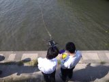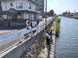 待ってましたと! 購入したての水中ドロ-ン2号機を会社前の天神川で操作してもらいました。