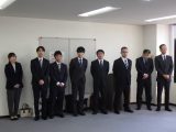 朝礼前の新しい社員の皆さんです。緊張感が滲んでます。