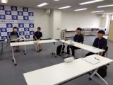 台風の影響で天候が思わしくないので、会議室で行いました。