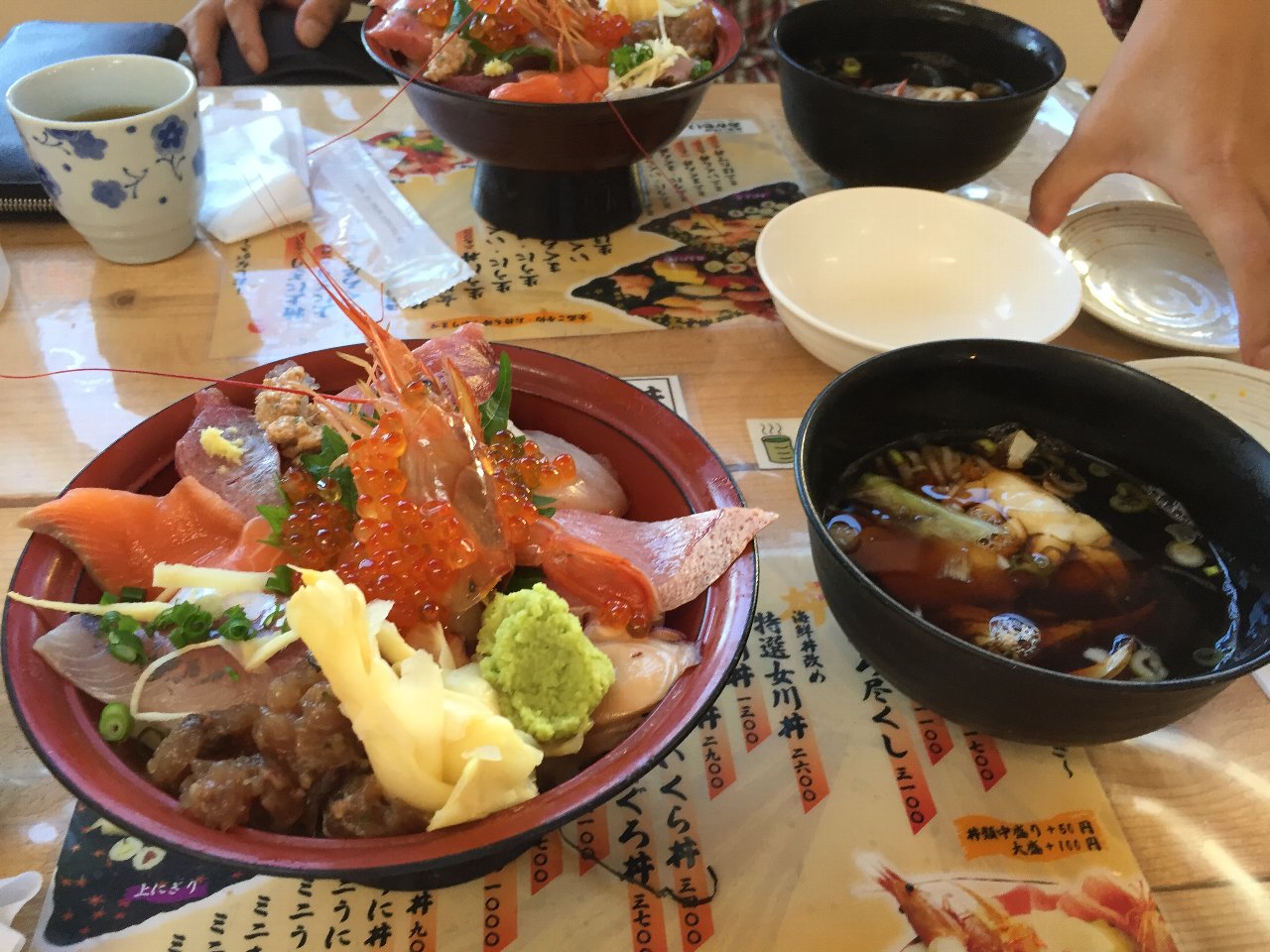 時間が少し余ったので石巻漁港のジャケット式桟橋を見学し、少し足を延ばして女川町に海鮮丼を食べに![]()